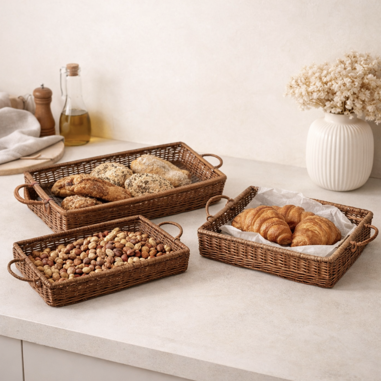 Bandejas de mimbre con asa