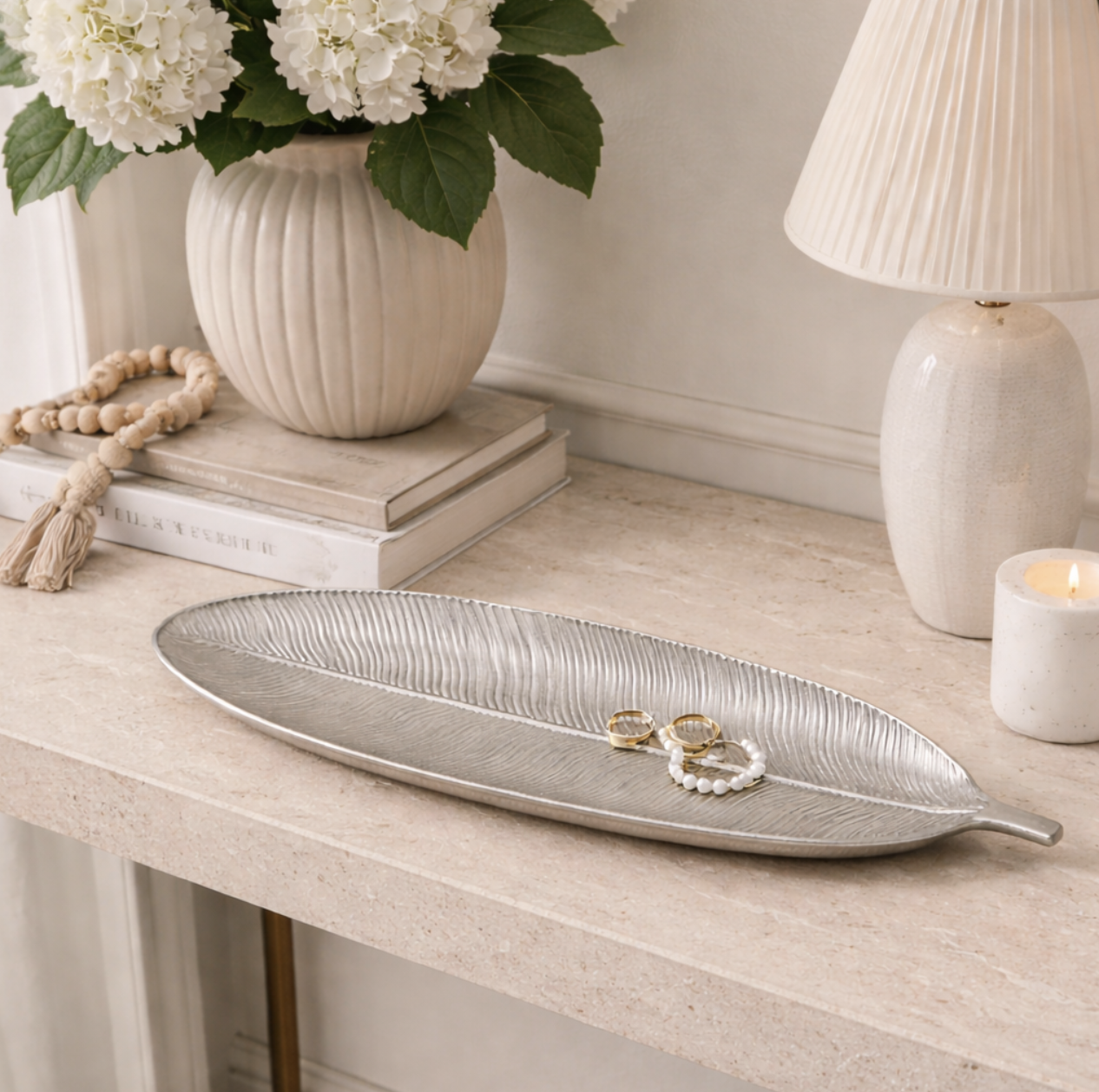 Centro de mesa hoja 40*14.5 plata 4197