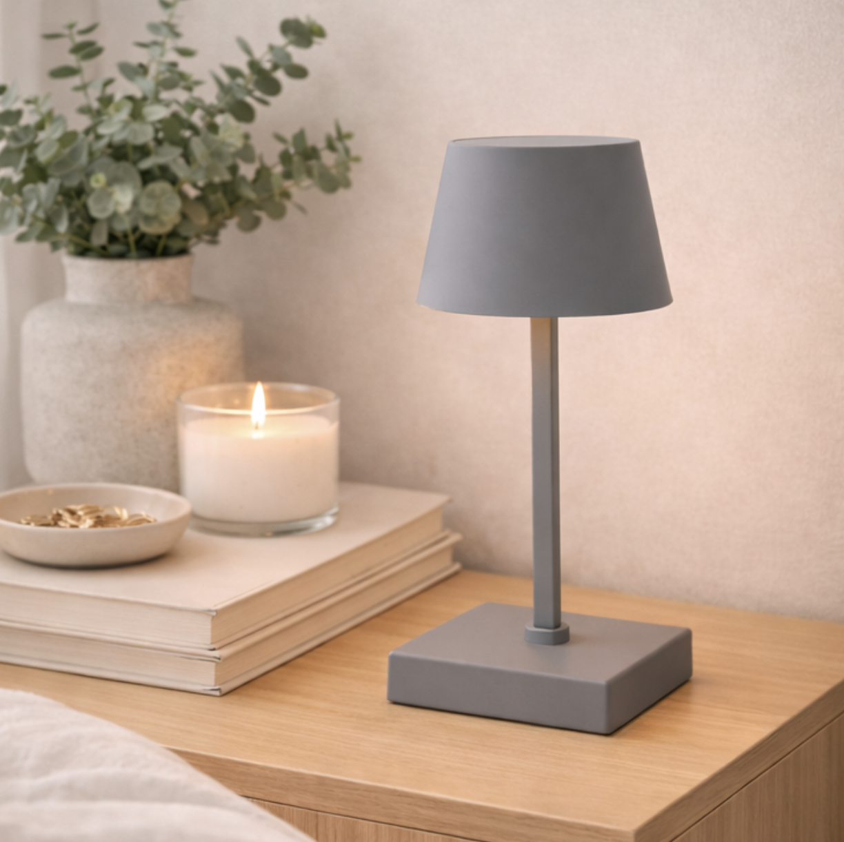 Velador a pila 26 cm gris al tacto