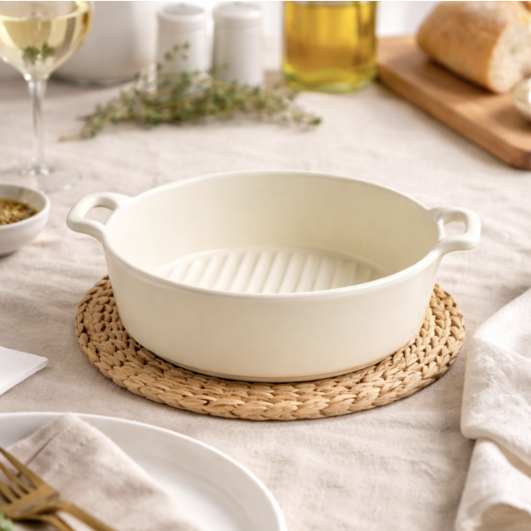 Fuente redonda ceramica crema 17,5*6 2123